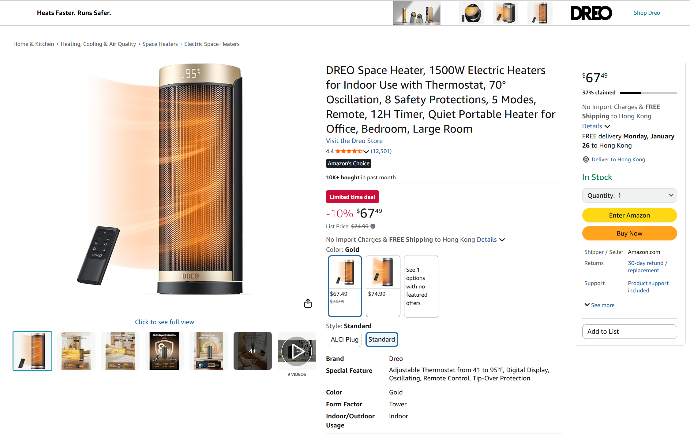 Uniform Heating: Experience enhanced comfort in large rooms with the exclusive trackball system, engineered for smooth and whisper-quiet oscillation. The 70° wide-angle oscillation, with a lifespan of over 750,000 cycles, boosts heating coverage by 20%, which helps distribute the warm air more evenly towards the room’s corners